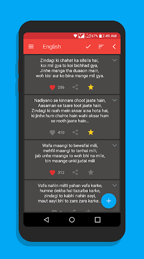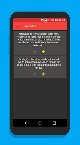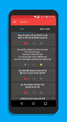 Simple, interactive and user friendly shayari app with categories ranging from love, sad, funny, romantic, festive etc, in Hindi, English and Punjabi languages.