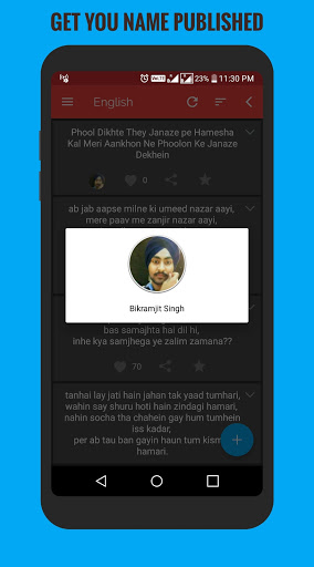 The distinctive feature of the app is you can submit shayari, and our team will review and update it on the app. Once submitted, you name will be published on app.