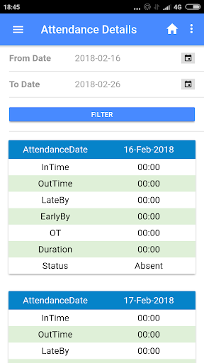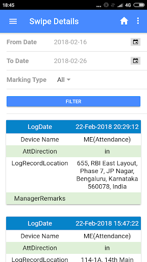 Field employee can swipe in and swipe out from the android app which will be captured by server along with the location from where it was applied.