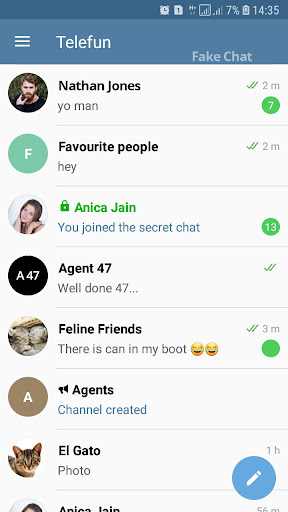 Fake Chat lets you create realistic mocks of chat conversations and share them with your friends. Create Telefun Prank contacts and conversations and have fun with your friends and family.