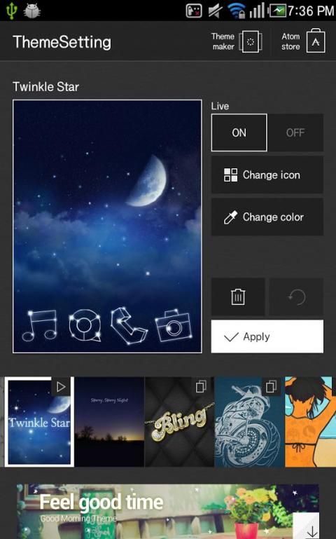 1. Incorporating photos in the gallery with Atom icons (Menu – Wallpapers - Apply)