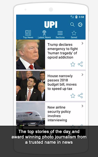 The UPI app features the top news stories and photos of the day including, U.S., Politics, World, Entertainment, Odd News, Business, Health, Science and award-winning photojournalism.