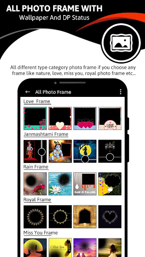 ⇀ Your Saved item as All Photo Frames, All Dp and Status, All Wallpapers.