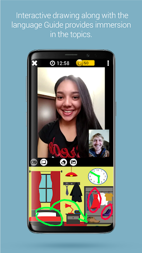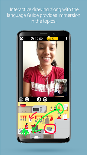 Half of your screen displays an interactive environment based on your favorite topics, creating the most immersive language experience you can have on your phone or tablet. And this immersive opportunity is available anytime you want because Viglo Guides are on duty every moment of the day. No scheduling necessary; just open Viglo when you're ready, and together you'll build English confidence with your Guide.