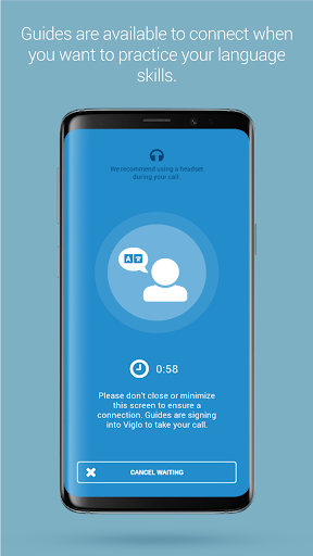 Viglo recreates the English world, providing you a real-life experience. First, you choose an environment where you want to speak English. Then Viglo immediately connects you to a live video chat with a professional English Guide who's always fun, and very patient with you during your calls.