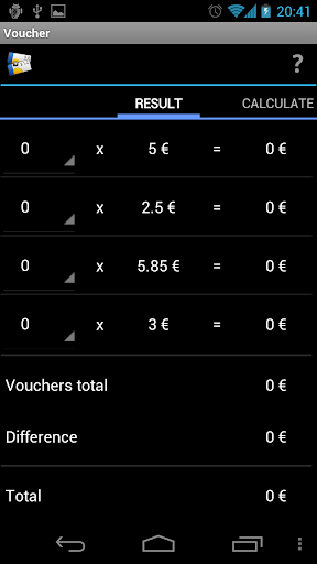 Do you want pay with meal-tickets but you don't want to waste your time calculating the bill? Voucher calculate for you quickly the quantity of meal-tickets.