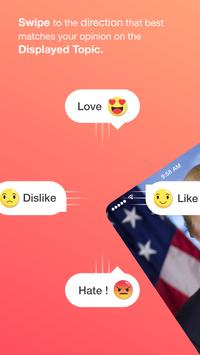 It's amazing how much fun Waver is. How do you like Donald Trump's new hair color? And what do you think of Donald Trump as such? What do you think about a hot dog being a sandwich? And when we're eating, what about pizza with pineapple? How do you feel about sharing motivational quotes? Is it OK when a man urinates sitting down? Whether the questions are more or less deep, they have one thing in common - they are processed in funny way. However, it does not end with questions. You will rate personalities, statements, quotes, jokes, current events and much more. So if you just don't feel like starting a new conversation, flirting, or going out on a date - you don't have to. However, you can still have fun evaluating countless topics. And the best part is that the more fun you enjoy in the evaluation, the more accurately you can compare your worldview with other users.