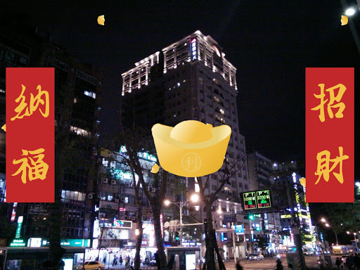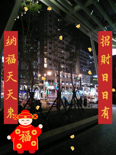 Camera with build-in Chinese wealth baby, gold ingots, couplets and animation.