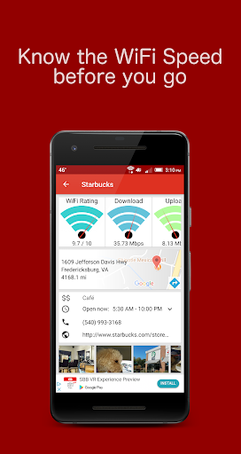 - View the speed results other users have evaluated for WiFi anywhere, as well detailed business information including open hours, photos, location, and more.