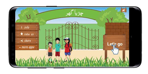 The user has the choice to choose the visiting option of the zoo. A total of 10 species in the selection are listed on the right side for selection, else it can be navigated in a described manner. It shows the picture of that object, with colorful background and catchy music. The description of each item is in the Urdu language, making it easy for Pakistani kids to understand and enjoy the valuable stuff.