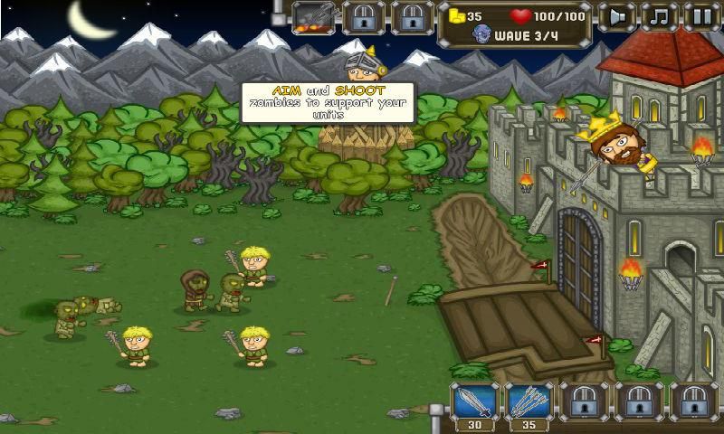 Knights and Zombies face off in a battle over a strategic battlefield! Use your wits to choose the best units to put in the field, and use your timing to use their special abilities to tip the flow of battle in your team's favor! There are also various upgrades to ensure your troops have the longest possible time to cause mayhem for the enemy! The enemy's base awaits, and when it falls, your team has won!