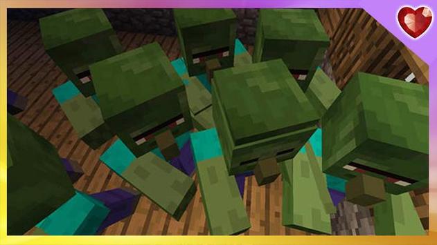 Zombies for minecraft often appear in groups. If a zombie minecraft sees a player or a villager, the zombie will start chasing him and making horrible sounds. If a zombie minecraft maps finds an item on the way, he will pick it up, and if it is an armor, he will put it on. Also, if one zombie saw a resident, then all the nearby zombies will also go to attack him, and if a zombie bites a resident, then the resident will turn into a zombie resident.