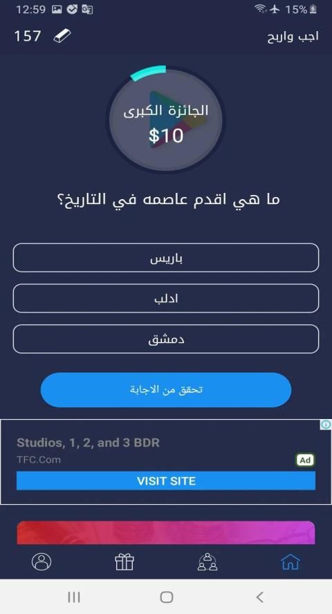 يمكنك من خلال تطبيق اجب واربح الحصول على العديد من المكافئات من خلال الاجابة على الاسئلة واكمال المهام