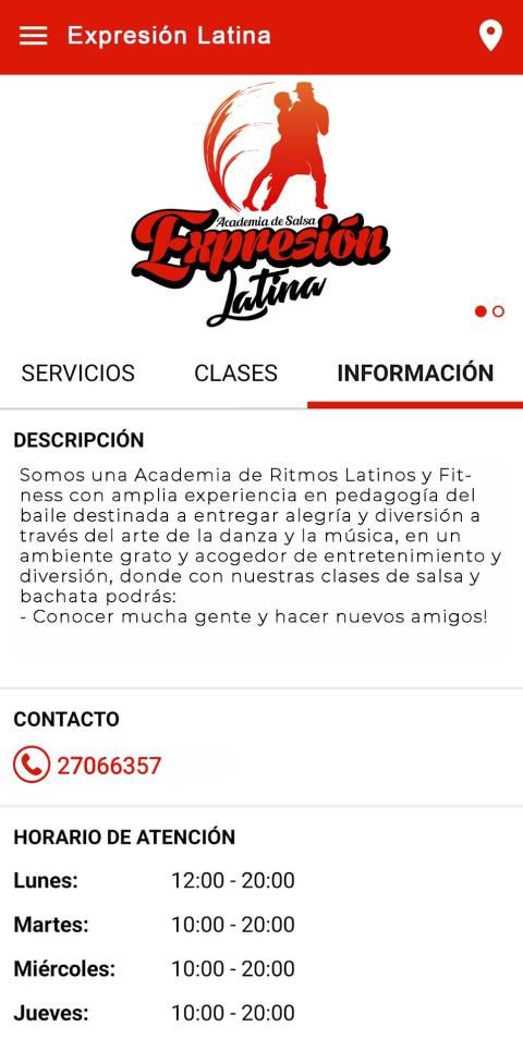 Somos una Academia de Ritmos Latinos y Fitness con amplia experiencia en pedagogía del baile destinada a entregar alegría y diversión a través del arte de la danza y la música, en un ambiente grato y acogedor de entretenimiento y diversión, donde con nuestras clases de salsa y bachata podrás: - Conocer mucha gente y hacer nuevos amigos! - Aprender la técnica del baile o disciplina que elijas. - Mantenerte en forma ejercitando tu cuerpo gracias al baile. - Olvidarte del estrés de la rutina diaria (de los problemas, estudios, trabajo, etc). - Desarrollar y fortalecer tu autoestima en un ambiente de integración social. - Dejar atrás la timidez y atreverte a conocer nuevas personas. - AUMENTARÁS TU RENDIMIENTO EN TU LUGAR DE TRABAJO! nuestra principal motivación es enseñarte a disfrutar, liberar tensiones y ser feliz bailando. Ven a disfrutar con nosotros de la alegría de estar vivo!, de la cultura, la música y el Baile.