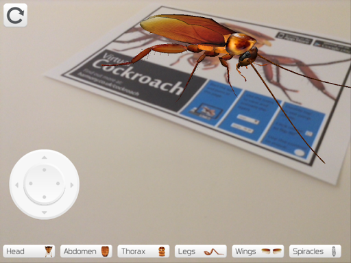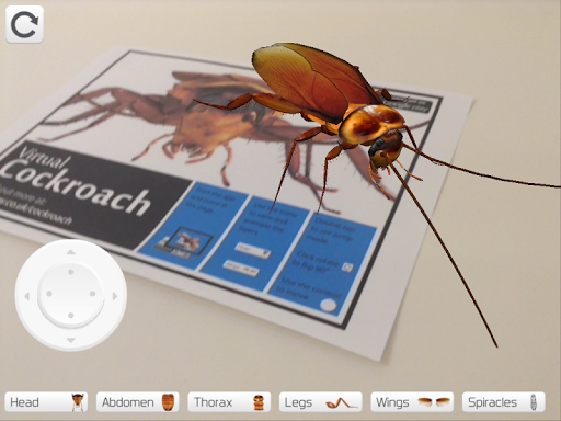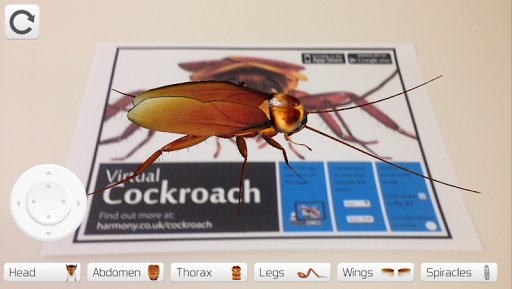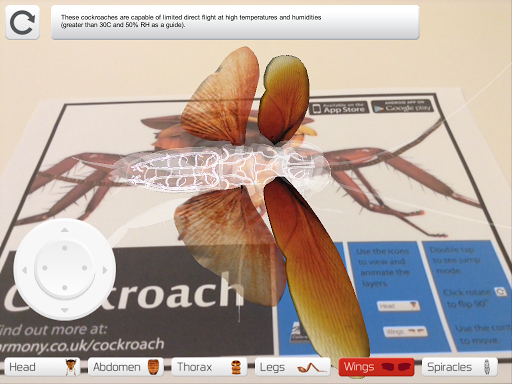 With the easily selectable cockroach control on the app, users are able to simply highlight different features of the 3D insect to see an in-depth description of individual body-parts.