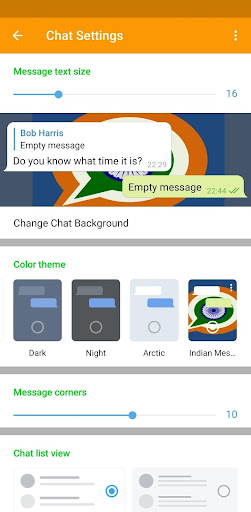 For those interested in maximum privacy, Indian Messenger offers Secret Chats. Secret Chat messages can be programmed to self-destruct automatically from both participating devices. This way you can send all types of disappearing content — messages, photos, videos, and even files. Secret Chats use end-to-end encryption to ensure that a message can only be read by its intended recipient.