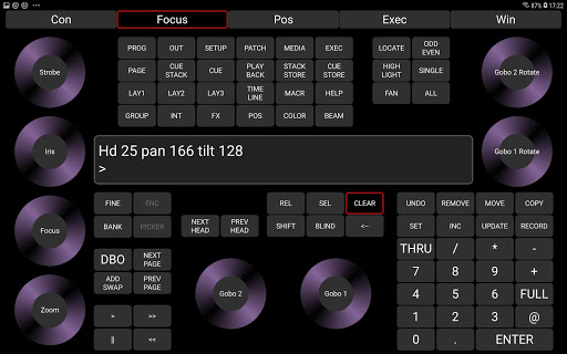• The separate Fine and Shift buttons have been restored. The operation of Shift has also changed. Enabling Shift on the remote will now operate on the next button pressed only and Shift will be disabled afterwards. The app will now not change the state of Shift on MagicQ.