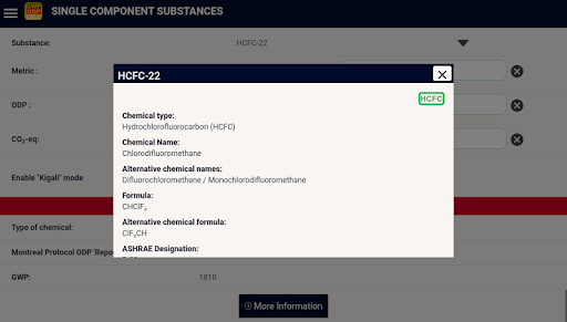 For single component substances simply select a substance from the dropdown list and enter the known value in the appropriate field (e.g. a quantity in Metric tonnes). The calculator will automatically perform the conversion between metric tonnes, ODP tonnes and/or CO2-equivalent tonnes (or kg) and display the corresponding converted values. The ODP, GWP and description of substance are also provided.