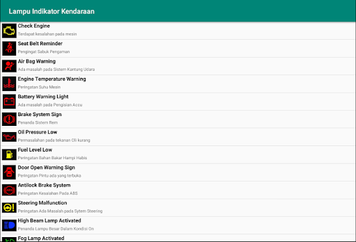 This Dash Lamp Warning light App will help explain if there are dash lights that are still on when the vehicle engine