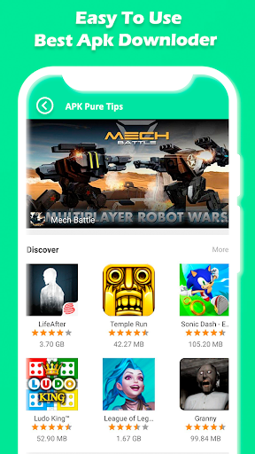 Apkpure APK download Guide is an app that gives you the chance to learn how to use apkpure when you're trying to get or download apps and games. So with apkpure and this simple tips and guide you can learn exactly what it takes to get apps and games if you want. apkpure is simple to use once you learn the details it takes to get your apps and games to your phone and to use the later on.