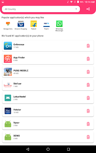 App finder is a professional Android application to remove/uninstall unnecessary applications from your phone. This application inform you about the country of origin of applications.