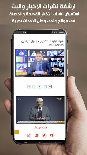 The official Yemen Channel application displays the latest local Yemeni news, politically, economically, sports, and all Arab and international news
