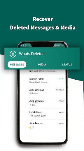 WhatsDeleted is a utility which will help you recover deleted messages by scanning your notifications. With this app, you can not only recover text messages but also any media attachments (pictures, videos, voice notes, audio, animated gifs, and stickers)!