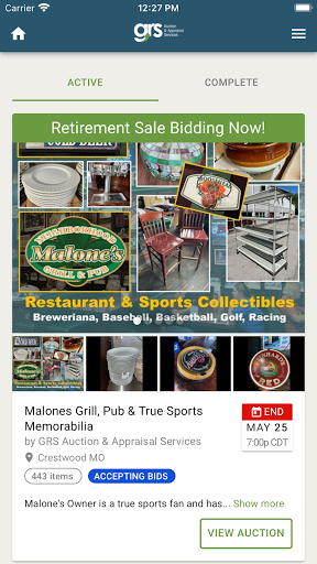 With GRS’ new app, available for iPhone and Android, you can now participate in live auctions or bid online from anywhere you have an Internet connection. Never miss out on a great value again—take GRS Auction & Appraisal Services with you, wherever you go.