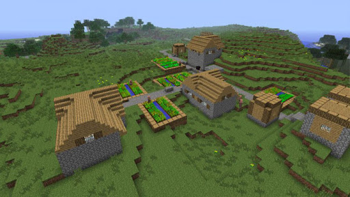 The app Village Maps For Minecraft is a pack with villages, for you to play. Each village has it's own characteristics and personality