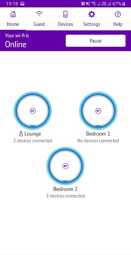 The app for setting up and managing all 3 models of Whole Home Wi-Fi from BT (the white discs):