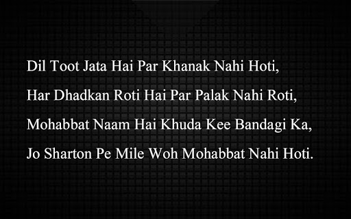 Shayari is used to convey the sentiment of love. Beautifully written and narrated Shers makes it easy for a lover to pour his or her heart in front of the lover. Enjoy the huge collection of Dil Ki Baat Shayari Ke Sath.Shayari is unique poetic way to express yourself and express your feelings deep in heart. This app is the right place for Specially Dil Ki Baat Shayari Ke Sath on every Best in categories like Heart Touching SMS ,hindi shayai,Funny,Bewafa,Frinedship shayari,Dosti shayari,Yaadetc.
