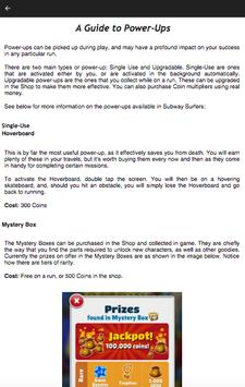The number one Guide For Subway Surfers Here is an unofficial 100 %, this app is the huge and complete guide for this amazing game. You will find there exactly what are you looking for and what you need to enjoy this great game much better. It is perfect as for beginner as and intermediate players. Please note - This is not a game !! It's is the huge and complete game guide.