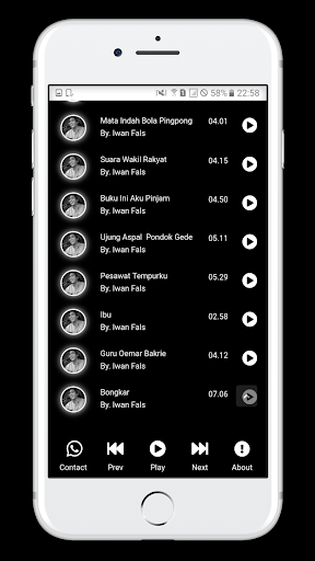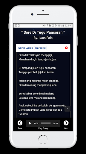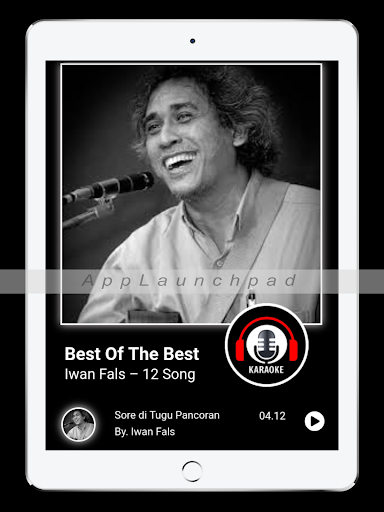 Karaoke Iwan Fals - Aplikasi ini berisi kumpulan lagu orang iwan fals lengkap plus lirik karaoke nya, Semua lagu yang ada di apikasi ini tersedia secara gratis dan juga tersedia lirik di setiap lagunya sehingga anda dapat bernyayi karaoke sendiri lewat layar Handphone dan dapat menggunakan bantuan Mic Bluetooth