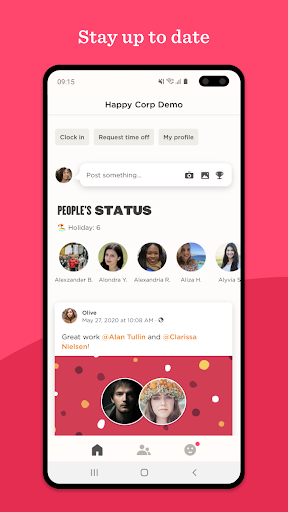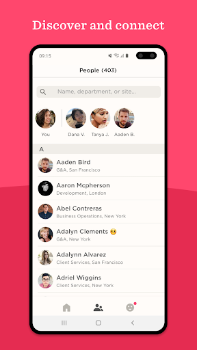 • Connect with coworkers through the social features – Post and react to Shoutouts, Kudos and Polls