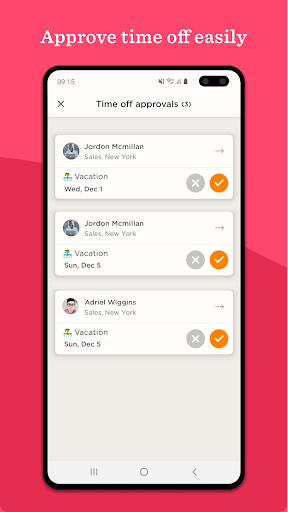 • Receive push notifications when it’s time to submit their timesheet, when their time off request is approved and when they need to sign or read a document