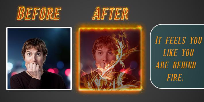 Add fire effects and fire frames to your photo. The app contains many specially designed fire frames to choose from and many different fire theme stickers to add to your photo. You can create cool fire effect photo with this application.