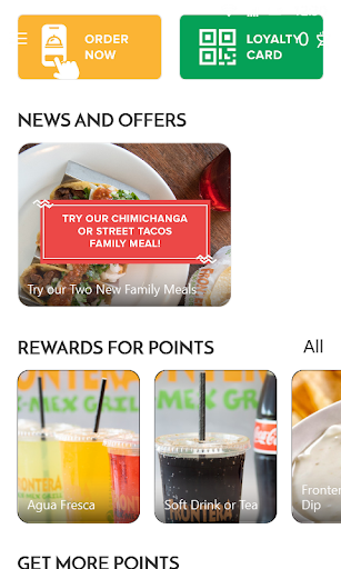 The new Frontera Mex-Mex Grill app is a convenient way to order your favorite items and avoid waiting in line. Show your loyalty card every time you pay for an order to earn points and get free items from our menu!
