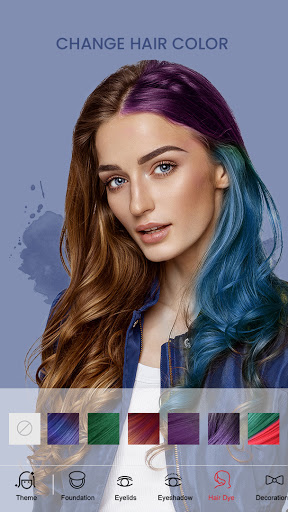 With this Free Selfie Camera and Smart Photo Editor, you can change your hair color into striking, trendy colors, smooth skin, slim face in just a few seconds and catch up on makeup trends right on the app.