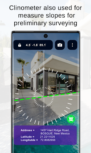 Clinometer Camera is used to measure the inclination angles, slope or elevation of your device respect to gravity direction.