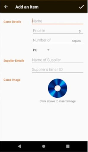 an app that enables a store owner to record information pertaining to a game within his app and track sales and increases in the number of copies. If the number of copies nears zero, the owner also has an option to order copies via email.