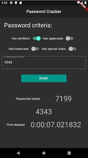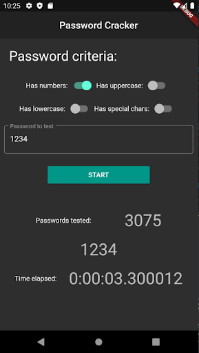 Check how long would take your phone to break the security of your password using a brute-force attack. Verify the security of the passwords and compare results.