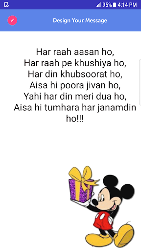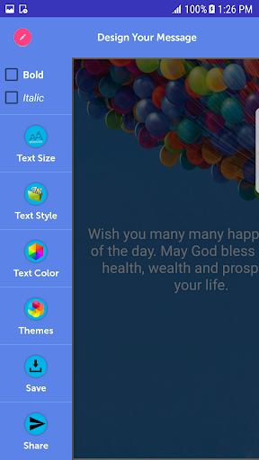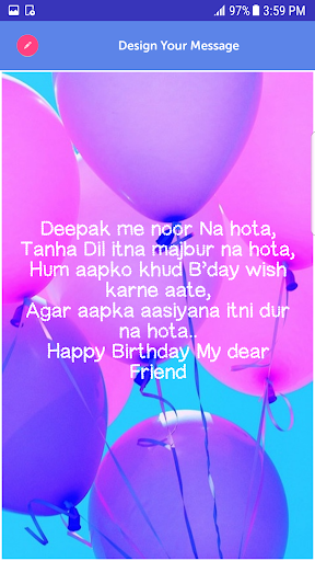 Open Happy Birthday app…. Select your desired quotes….. customize it with app menu functions such as Font Style, Font weight, Themes, Colors….. then your Birthday picture card is ready to wish.