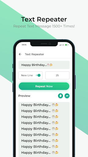- Text repeater: repeat text message to multiple rows in second and share with WhatsApp.