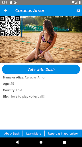 DashQueen is a monthly beauty contest where viewers vote for their favorite contestants by directly sending them Dash, digital cash cryptocurrency. The contestant with the most Dash earned during the contest period wins. There are no middle-men, no accounts, and everyone is free to participate.