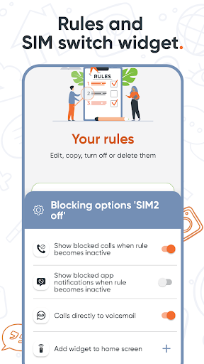 Experience the freedom of a distraction-free phone with our premium call blocker, SMS blocker app with dual SIM support. Download now and enjoy a more peaceful and productive life. Number 1 Dual SIM Call blocker. Block calls and apps per SIM card. Your SIM card manager.