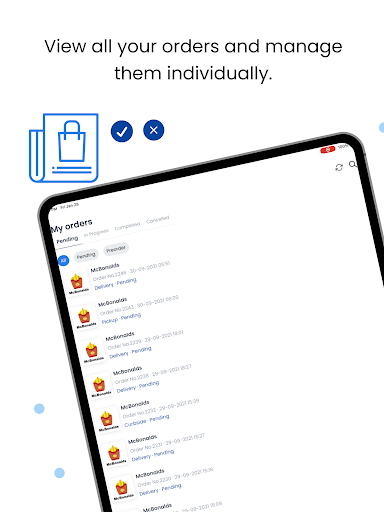 - Affiliated businesses receive visual and sound notifications when orders arrive on your smartphone or tablet, even when the app is closed