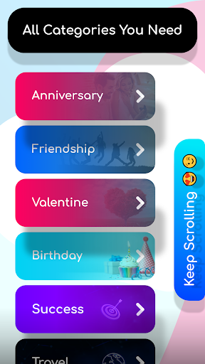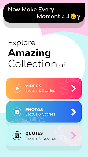 This application contains Photos Status, Videos Status & Quote Status from different types of categories,