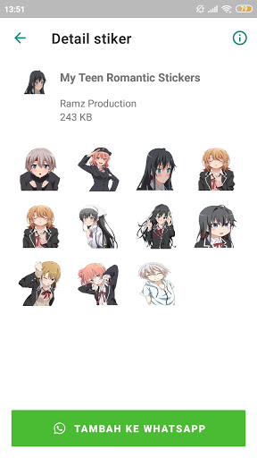 Cute Anime Sticker For WhatsApp provides a lot of cute anime characters for FREE!!
