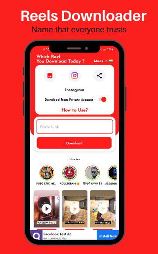 Download Reels videos for Instagram by just pasting reels video link.