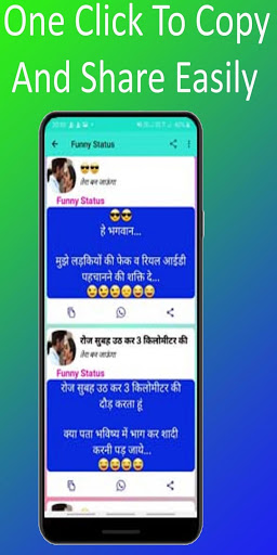 ★ Copy Status on clipboard or share with any social media application like Whatsapp, hike, facebook and many more.